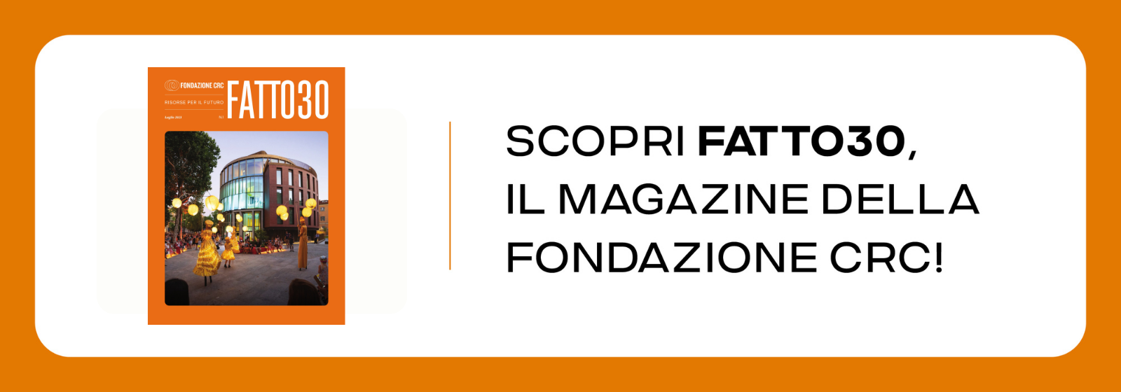 La Fondazione CRC Donare è un ente non-profit che opera per diffondere la cultura del dono sul territorio nazionale, attraverso progetti ed eventi capaci di generare un impatto sociale sulle comunità e creare opportunità per il futuro.